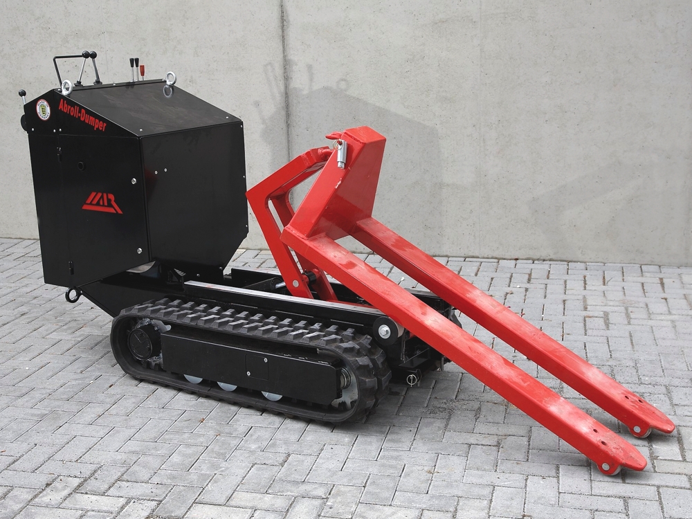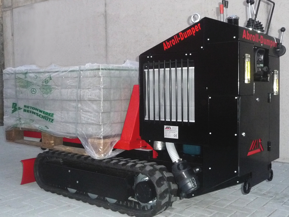Der Abroll-Dumper ist für jedes – auch unwegsames – Gelände bestens geeignet. Damit wird das Transportieren zum Kinderspiel.
